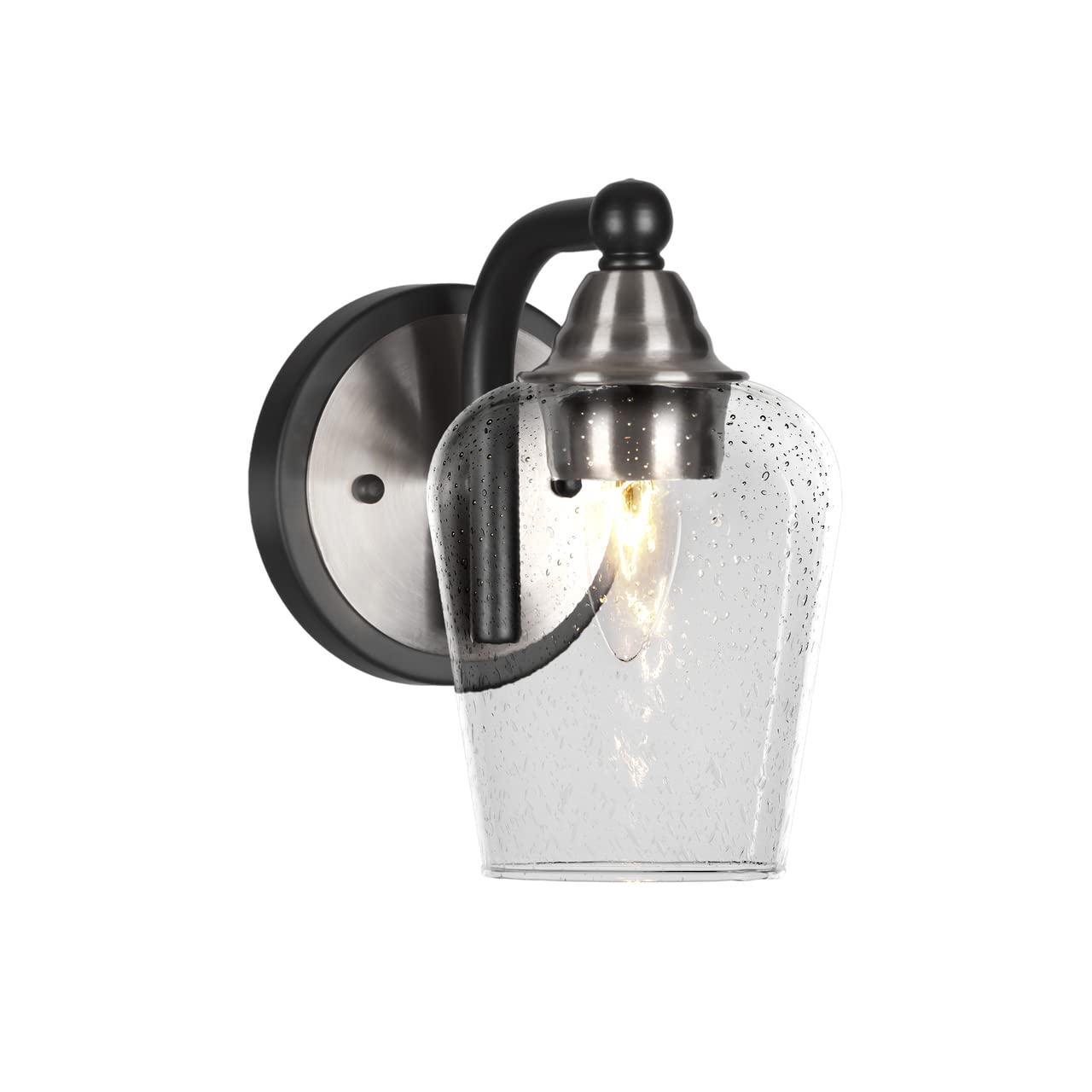 Illuminate Your Space The Stunning Paramount Wall Sconce, Featuring An Elegant Matte Black And Brushed Nickel Finish. The 5" Clear Bubble Glass Adds A Touch Of Unique Charm, Enhancing The Overall Aesthetic Of Any Room. This Stylish Sconce Not Only Provides Beautiful Lighting But Also Serves As A Striking Decorative Accent In Your Home.