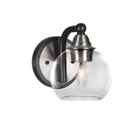 The Paramount Wall Sconce, Stunning Matte Black & Elegant Brushed Nickel Finish, Adds A Touch Of Modern Sophistication To Any Room. Featuring A Unique 5.75" Clear Bubble Glass Shade, This Light Fixture Effortlessly Combines Style And Functionality. Perfect For Illuminating Hallways Or Creating A Welcoming Ambiance In Living Spaces, The Paramount Wall Sconce Is A Must-Have For Contemporary Decor.