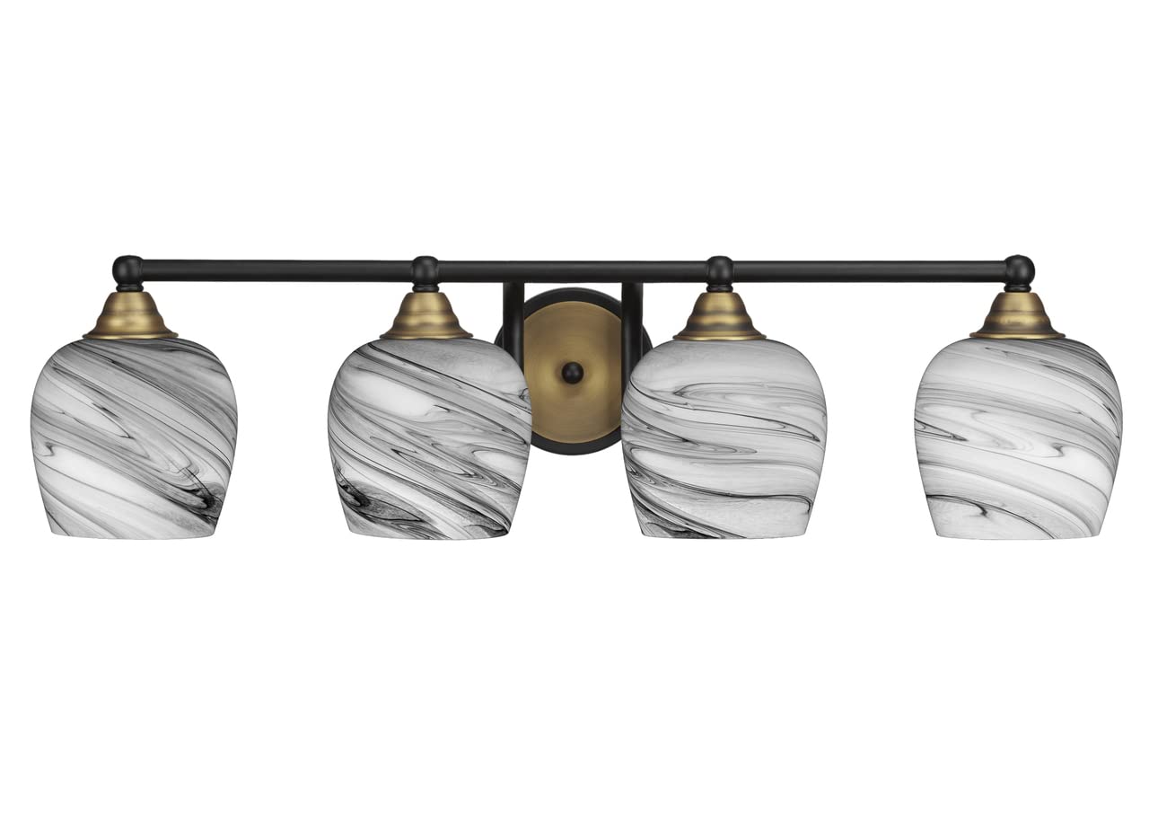 3424-MBBR-4819 Paramount 4 Light Bath Bar In Matte Black & Brass Finish With 6" Onyx Swirl Glass. Rated for: Dry location. Light Bulb Data: 4 E26 100 watt. Bulb included: No.