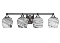 3424-MBBN-4819 Paramount 4 Light Bath Bar In Matte Black And Brushed Nickel Finish With 6" Onyx Swirl Glass. Rated for: Dry location. Light Bulb Data: 4 E26 100 watt. Bulb included: No.