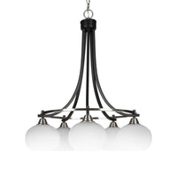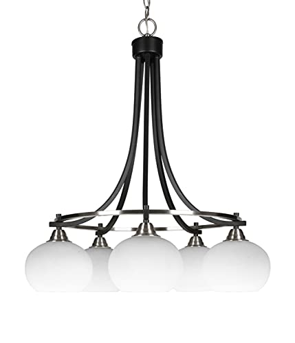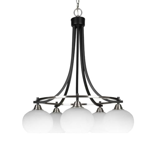 3415-MBBN-212 Paramount 5 Light Chandelier In Matte Black & Brushed Nickel Finish With 7" White Muslin Glass. Rated for: Dry location. Light Bulb Data: 5 E26 60 watt. Bulb included: No.