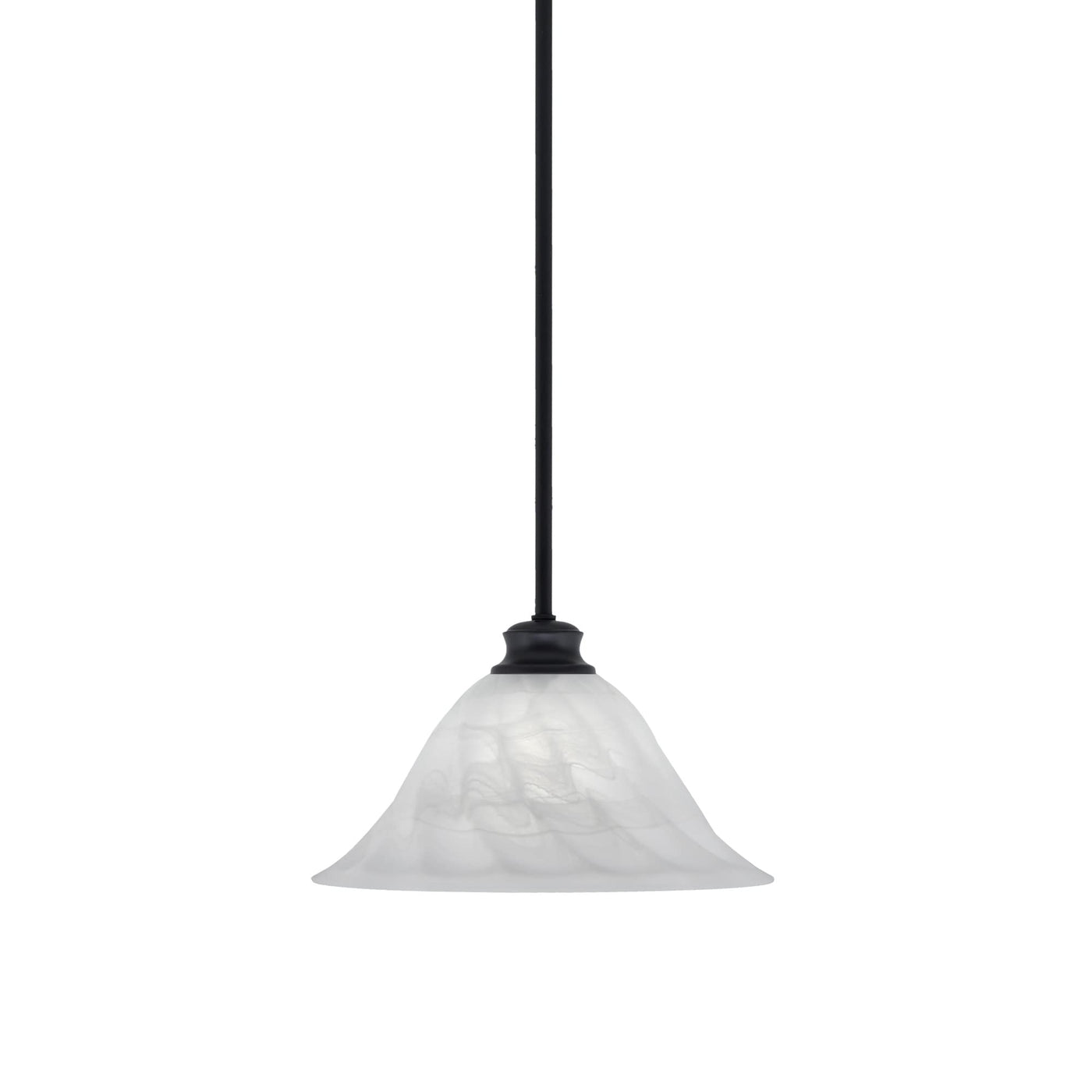 Toltec Lighting Stem Pendant With Hang Straight Swivel Shown In Matte Black Finish With 14" White Alabaster Swirl Glass
