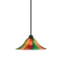 Toltec Lighting Stem Pendant With Hang Straight Swivel Shown In Matte Black Finish With 16" Mardi Gras Glass