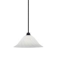 Toltec Lighting Stem Pendant With Hang Straight Swivel Shown In Matte Black Finish With 20" White Alabaster Swirl Glass