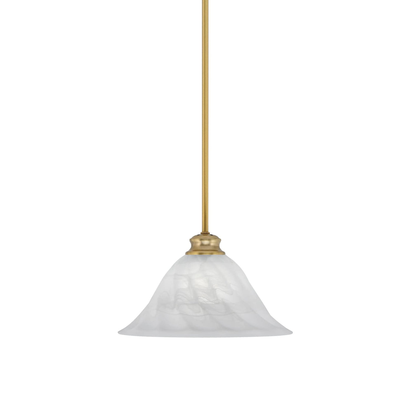 Toltec Lighting Stem Pendant With Hang Straight Swivel Shown In New Age Brass Finish With 14" White Alabaster Swirl Glass