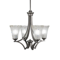 564-GP-721 Zilo 4 Light Chandelier Shown In Graphite Finish With 5.5" Fluted Frosted Crystal Glass. Rated for: Dry location. Light Bulb Data: 4 Medium 100 watt. Bulb included: No.