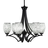 566-MB-4165 Zilo 6 Light Chandelier Shown In Matte Black Finish With 5" Black Fusion Glass. Rated for: Dry location. Light Bulb Data: 6 Medium 60 watt. Bulb included: No.