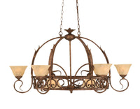 The Toltech Lighting 216-BRZ-508 Leaf Eight-Light Pot Rack with Eight-Hooks Bronze Finish with Italian Marble Glass, 7-Inch (Pots Not Included) is a ceiling light that features a 7-Inch Italian marble glass shade. This chain hung fixture comes with10-Feet of chain and 11-Feet of wire. Product dimensions (in Inch): 26 H by 32 W. Fixture requires 8 60-Watt medium base incandescent bulbs, not included. Product safety tested and approved by the UL/CUL in the US and Canada. Assembly required.