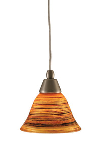 The Toltech Lighting 22-BN-454 Cord Mini-Pendant Light Brushed Nickel Finish with Firré Saturn Glass, 7-Inch is a ceiling light that features a 7-Inch firré Saturn glass shade. comes with 12-Feet of cord . Product dimensions (in Inch): 7.5 H by 7 W. Fixture requires 1 100-Watt medium base incandescent bulb, not included. Product safety tested and approved by the UL/CUL in the US and Canada. Assembly required. This model is also available in the following finishes: Black Copper, Bronze.