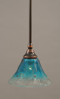 Toltech Lighting 23-Bc-458 7-Inch Stem Mini-Pendant Light Black Copper Finish With Teal Crystal Glass