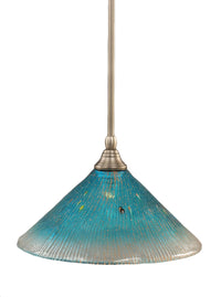 The Toltech Lighting 23-BN-448 Stem Mini-Pendant Light Brushed Nickel Finish with Teal Crystal Glass, 12-Inch is a ceiling light that features a 12-Inch teal crystal glass shade. comes with1-6-Inch, 2-12-Inch and 1-18-Inch stem sections. Product dimensions (in Inch): 8 H by 12 W. Fixture requires 1 100-Watt medium base incandescent bulb, not included. Product safety tested and approved by the UL/CUL in the US and Canada. Assembly required. This model is also available in the following finishes: Black Copper, Bronze.