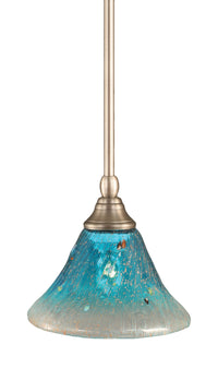 The Toltech Lighting 23-BN-458 Stem Mini-Pendant Light Brushed Nickel Finish with Teal Crystal Glass, 7-Inch is a ceiling light that features a 7-Inch teal crystal glass shade. comes with1-6-Inch, 2-12-Inch and 1-18-Inch stem sections. Product dimensions (in Inch): 6.25 H by 7 W. Fixture requires 1 100-Watt medium base incandescent bulb, not included. Product safety tested and approved by the UL/CUL in the US and Canada. Assembly required. This model is also available in the following finishes: Black Copper, Bronze.