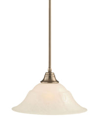 The Toltech Lighting 26-BN-53615 Stem Pendant Light Brushed Nickel Finish with White Marble Glass Shade, 16-Inch is a ceiling light that features a 16-Inch white marble glass shade. comes with 16--Inch, 2-12-Inch, and 1-18-Inch stem sections. Product dimensions (in Inch): 9 H by 16 W. Fixture requires 1 150-Watt medium base incandescent bulb, not included. Product safety tested and approved by the UL/CUL in the US and Canada. Assembly required. This model is also available in the following finishes: Black Copper, Bronze.