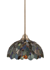 Toltech Lighting 26-Bn-995 16-Inch Stem Pendant Light Brushed Nickel Finish With Blue Mosaic Tiffany Glass
