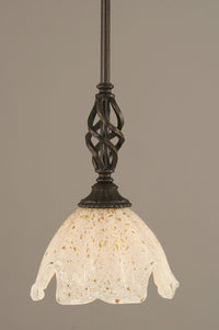 Toltech Lighting 80-Dg-755 7-Inch Elegante Mini-Pendant Dark Granite Finish With Gold Ice Glass Shade