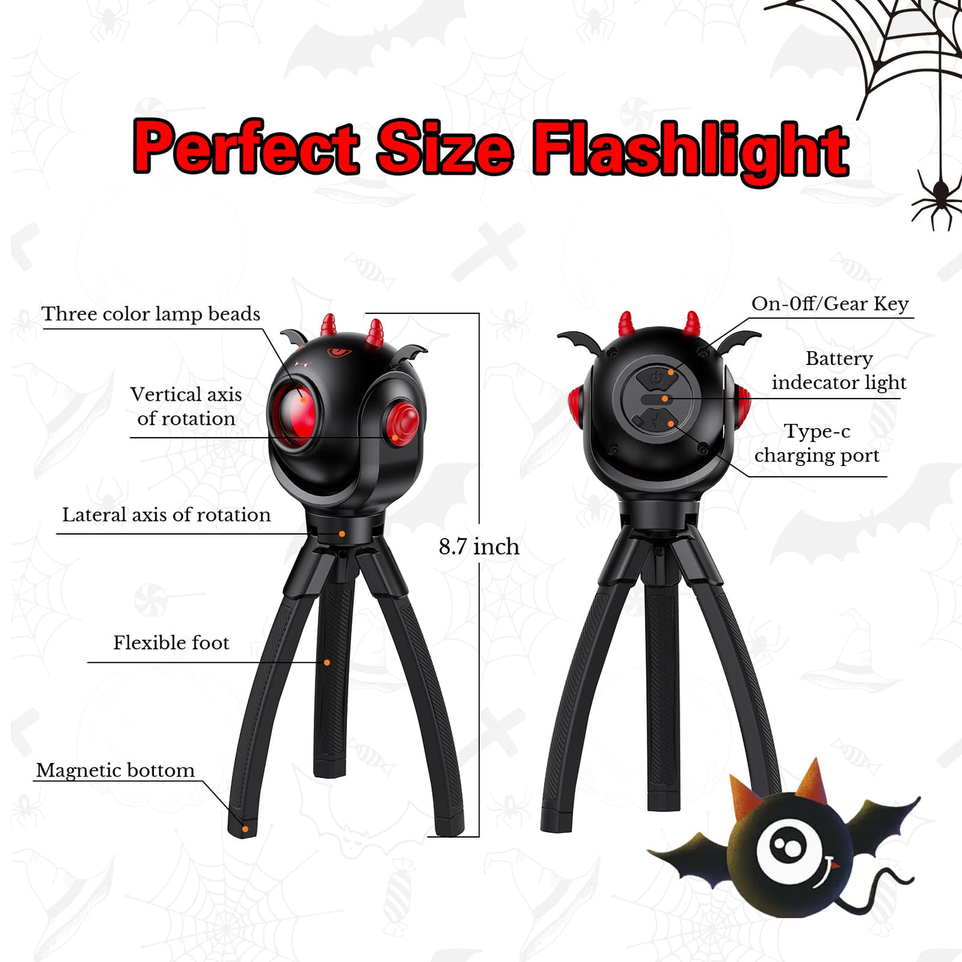 Flashlight, Doubles As A Toy And A Functional Flashlight, Perfect For Storytelling, Camping, Or Creating A Comforting Nightlight Atmosphere. Great Led Flashlight Engages Children With A Fun Array Of Light Colors, Perfect For Nighttime Play Routines. The Perfect Combination Of Cute Bat Image And Lighting Makes It A Great Gift For Children.