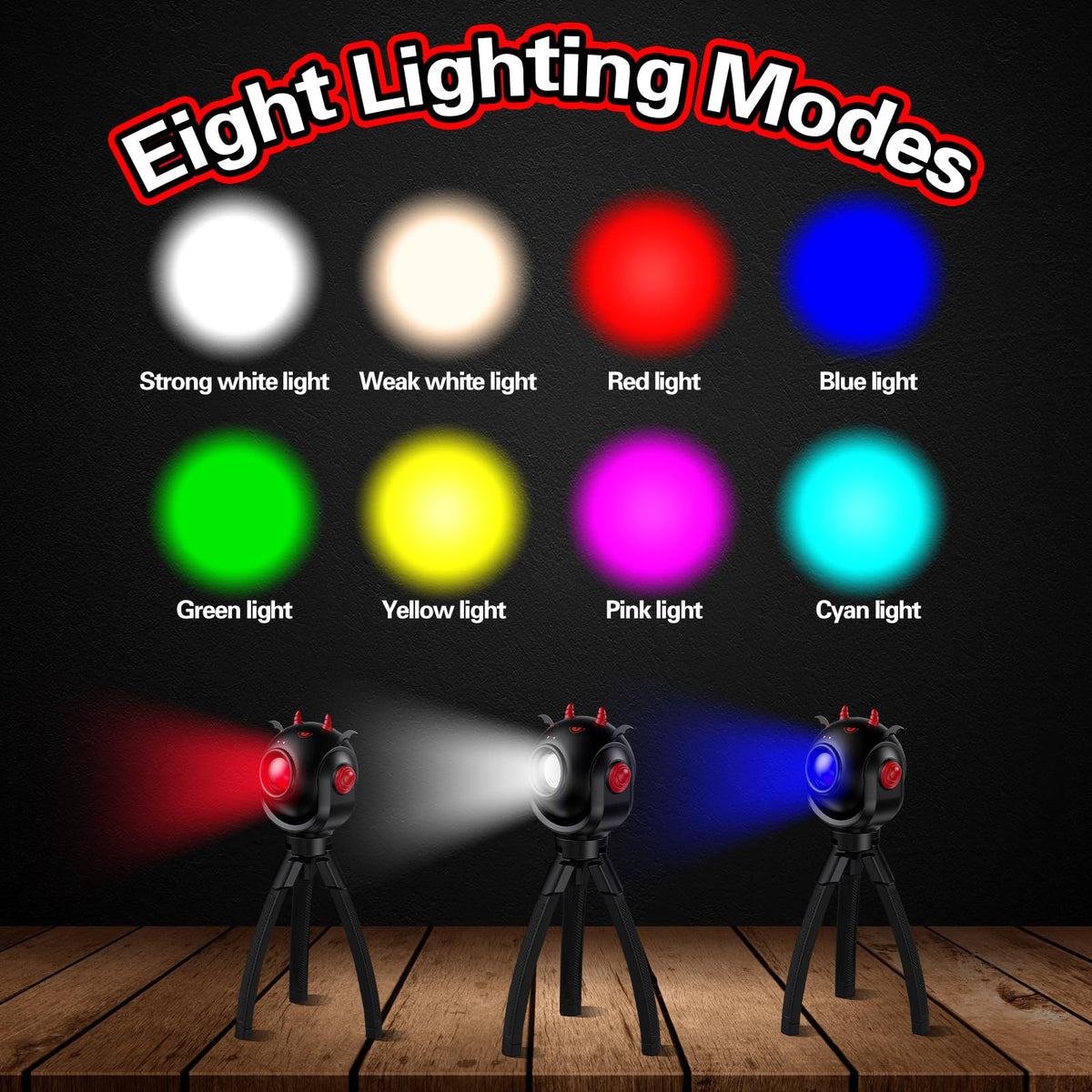 Q: What are the different color modes available in this flashlight?A: The flashlight features 8 vibrant color modes, including bright white, playful green, and calming blue. A quick press changes the color, while a long press activates the multicolor flashing mode.