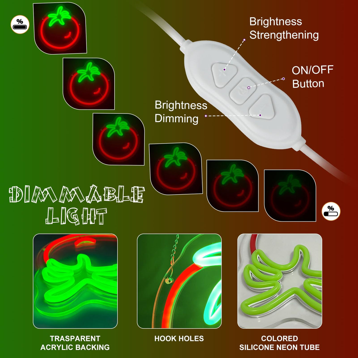 Tomato Neon Sign For Wall Decor,Cute Fruit Led Neon Light 9.4 * 10.2 Inch Dimmable Usb Kawaii Small Tomato Light Up Sign For Boy