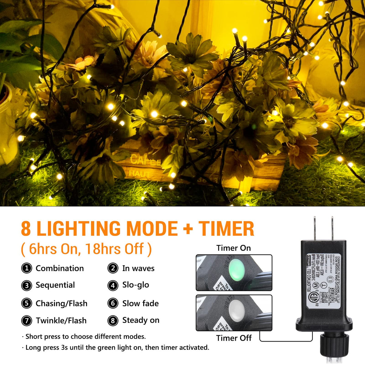 Toodour Christmas Lights Outdoor, 131ft 350 LED String Lights, Timer, Waterproof 8 Modes Outdoor Christmas String Light - Twinkle Light for Tree Home Garden Yard Wedding Party Xmas Decor(Warm White)