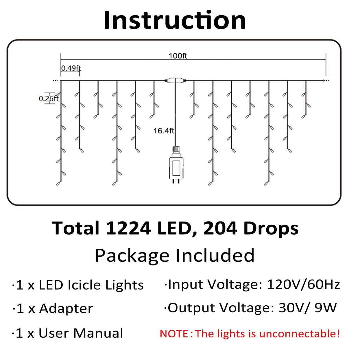 Toodour Icicle Christmas Lights Outdoor, 100Ft 1224 Led Icicle Lights With 204 Drops, 8 Modes Window Curtain Icicle Fairy Twinkl