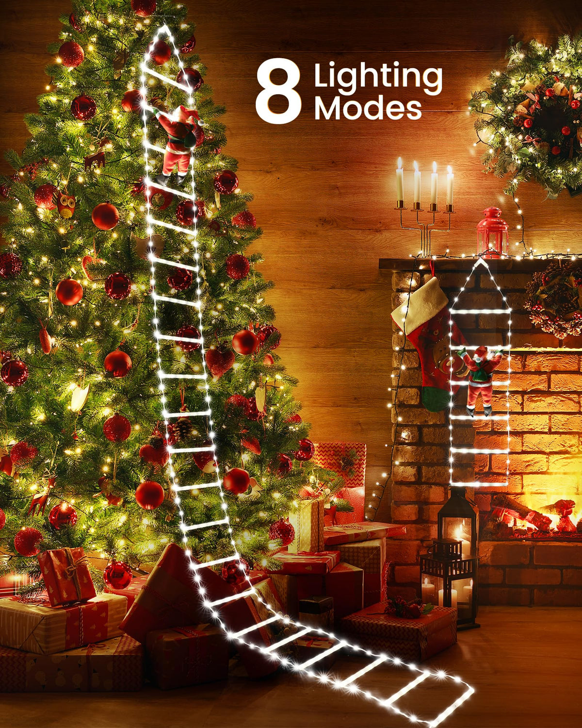 Toodour LED Christmas Light - 10ft Christmas Decorative Ladder Lights with Santa Claus, Christmas Decorations Lights for Indoor Outdoor, Window, Garden, Home, Wall, Xmas Tree Decor - Cool White