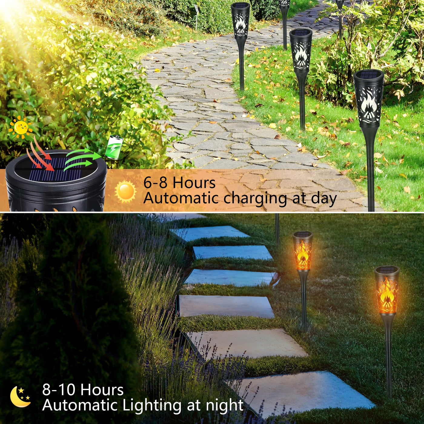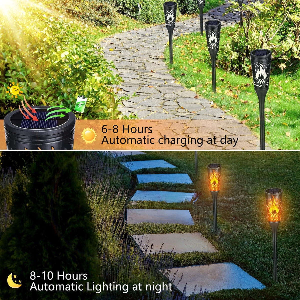 Toodour Solar Halloween Lights Outdoor, 10 Pack Solar Torch Lights With Flickering Flame, Ip65 Waterproof Yard Landscape Decorat