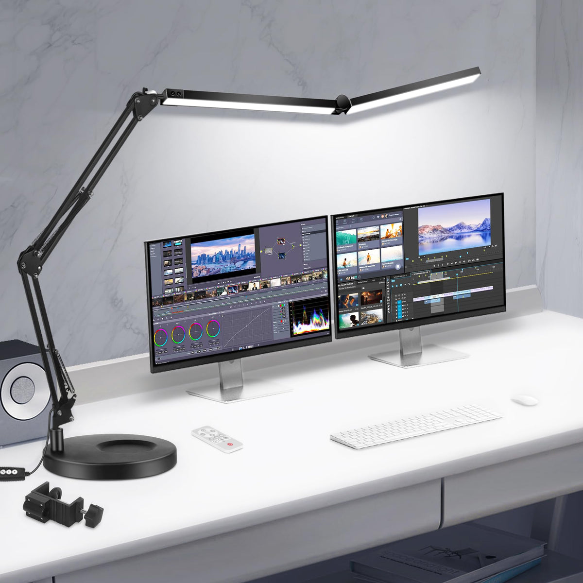 Toolour 2-in-1 Desk Lamps for Home Office - Experience a new level of illumination with this versatile 24W Large Double Head Desk Lamp featuring Remote Control and multiple advanced functionalities designed for your workspace needs.