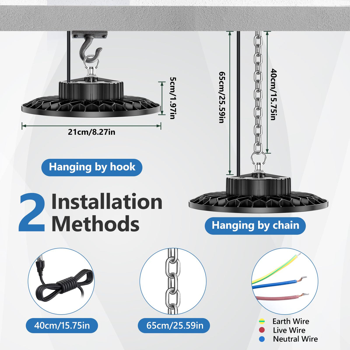 Q: Is the TOPAUBUB High Bay LED Light easy to install?A: Yes, the installation of the TOPAUBUB High Bay LED Light is user-friendly. It comes with a 6.56-foot power cord and a 30cm metal chain, allowing for straightforward mounting without needing an electrician.