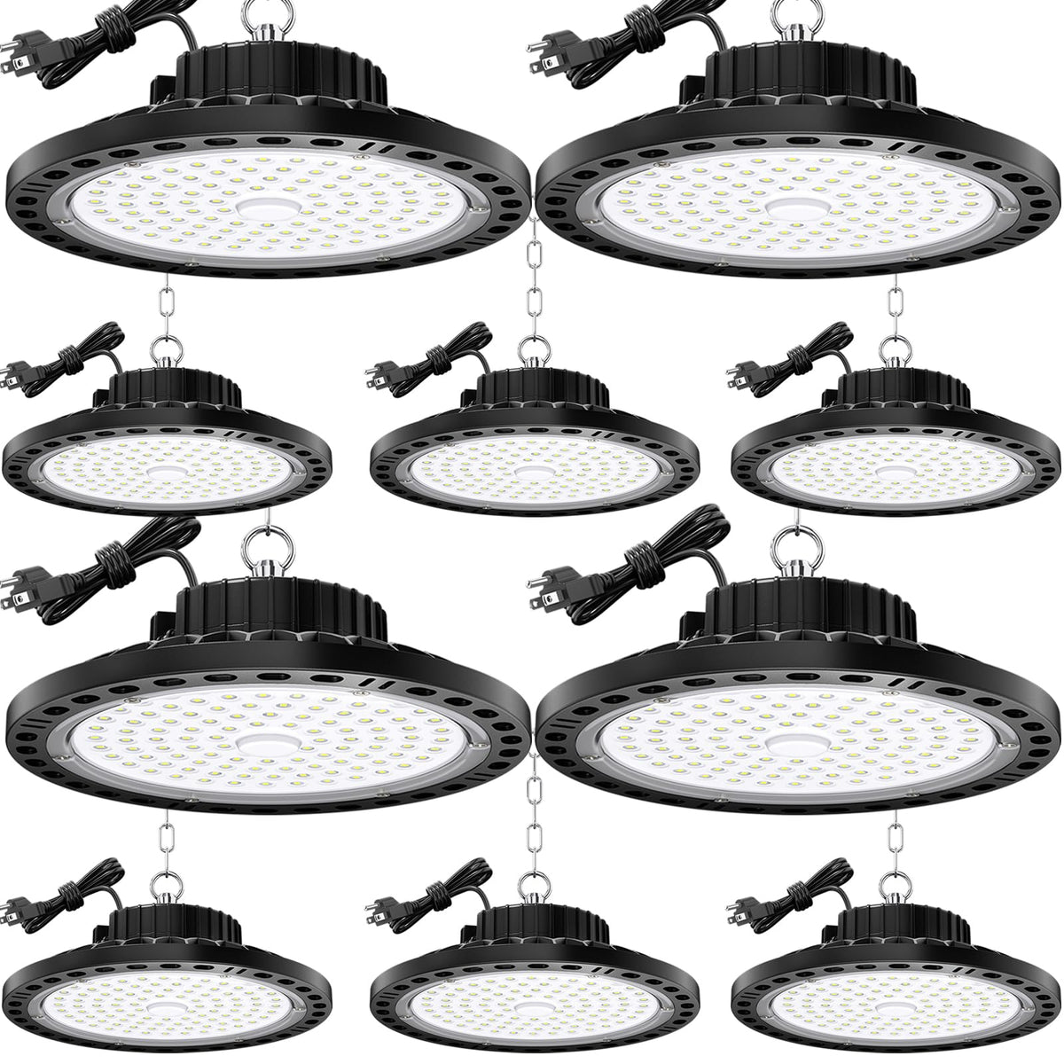 Topaubub 100W High Bay Led Light 10 Pack, 15000Lm High Bay Led Shop Lights With 6.56Ft Cable Us Plug, 11.8In Metal Chain, Driver