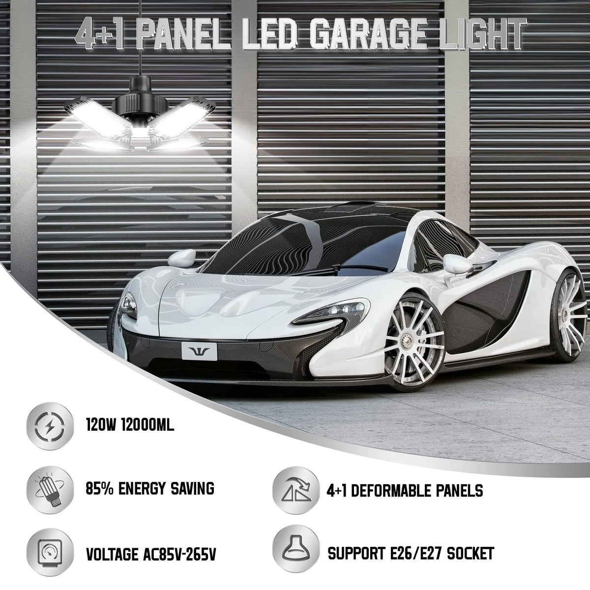 Topaubub Garage Light 1 Pack 120W, 12000Lm Led Lights For Garage With 4+1 Deformable Panels 6500K Screw In Led Shop Lighting For