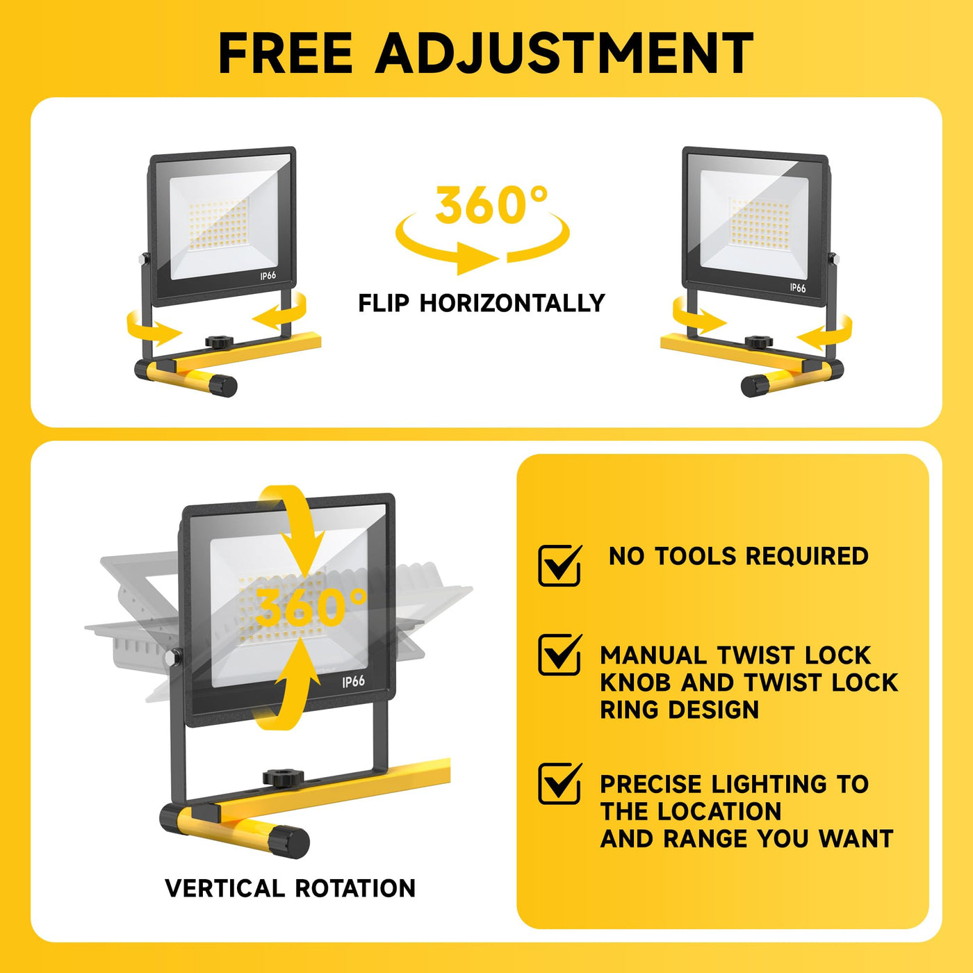 Toprated Plug In Led Work Light With Stand,28000 Lumen 110V 4 Adjustable Head Outdoor Flood Lights,Foldable Mechanic Light With