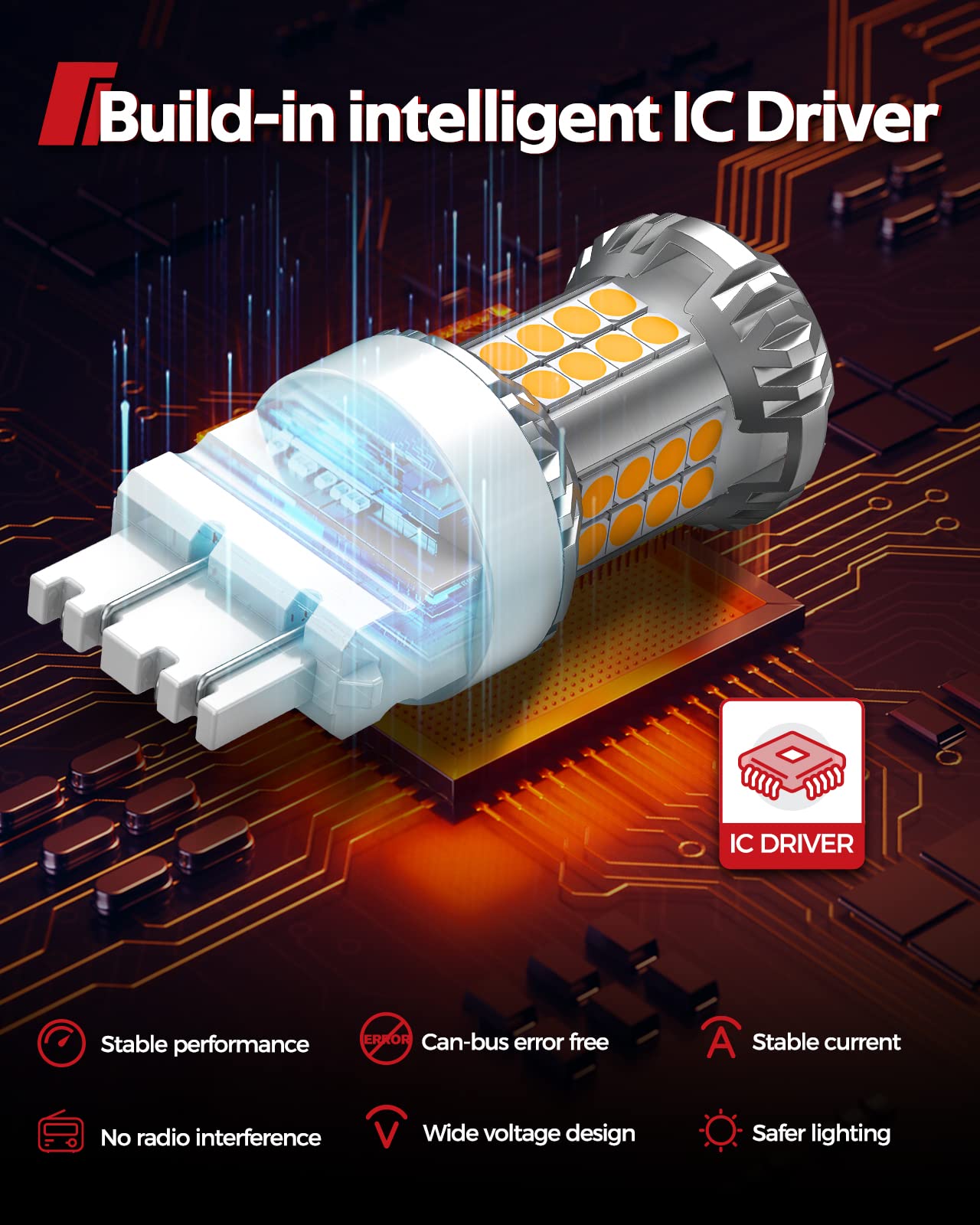 Torchbeam 3157 LED Bulbs Amber with External Resistor for Turn Signal Lights, 600% Brighter 3156 3056 3356 3057 4157 3457 4156 w