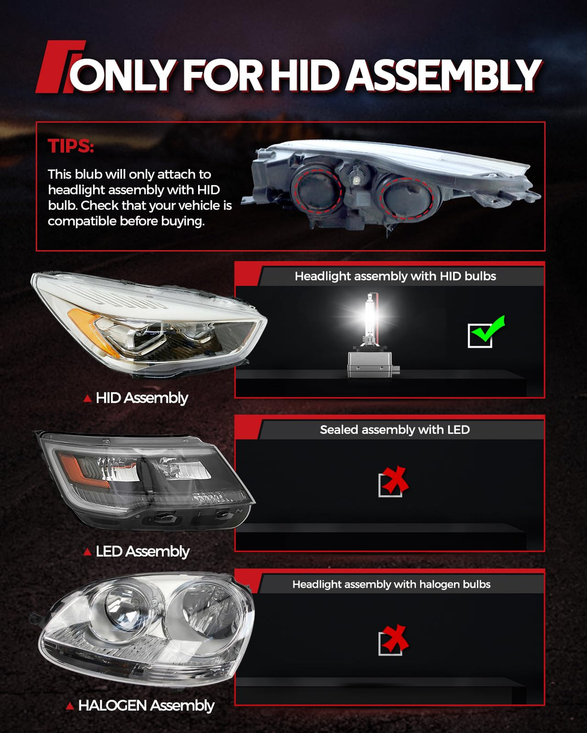 Q: Are these headlight bulbs compatible with my vehicle?A: The Torchbeam D1S HID Headlight Bulbs are designed for vehicles using HID bulb assemblies. To ensure compatibility, please confirm that your car is equipped with HID assemblies, as installation may not be possible otherwise.