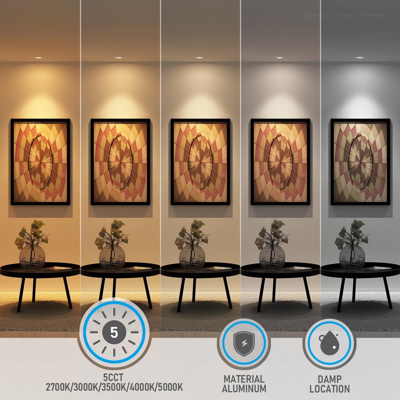 Torchstar 12-Pack 5Cct 3 Inch Ultra-Thin Led Recessed Lighting With Junction Box, Cri90, Aluminum, 2700K3000K3500K4000K5000K, 5%