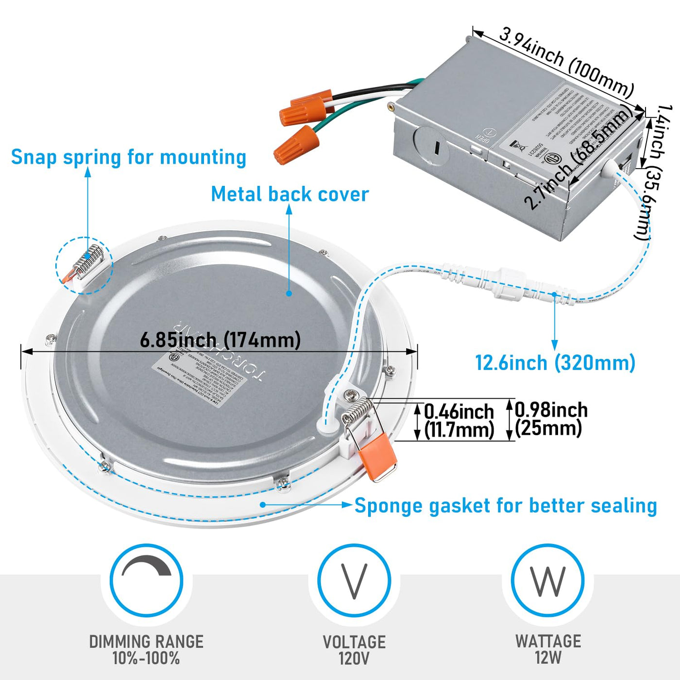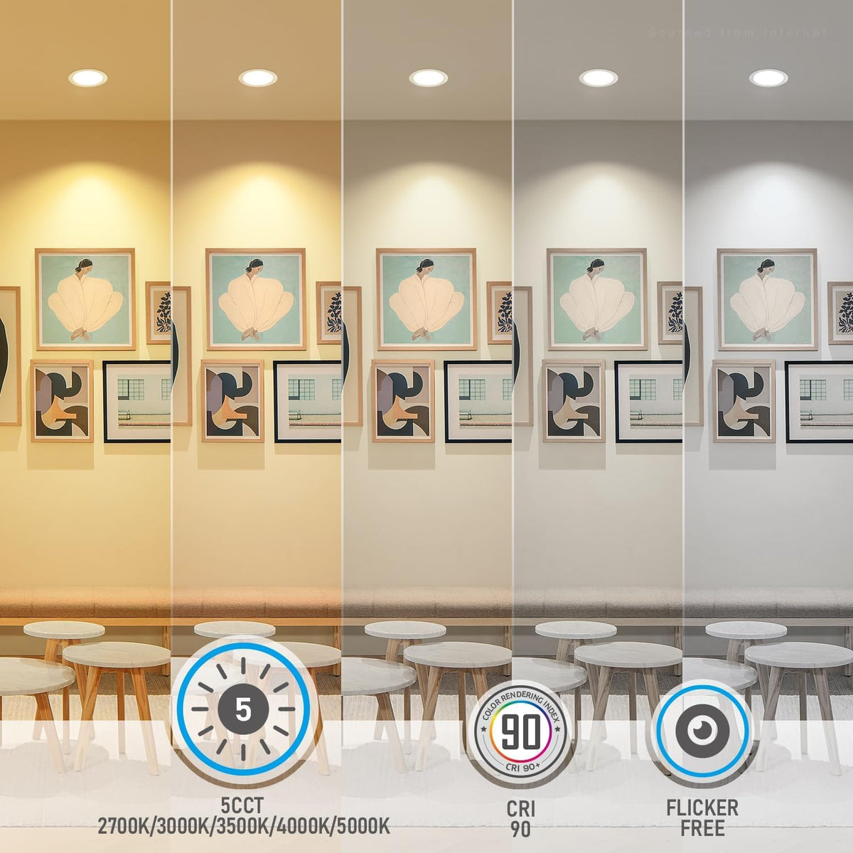 Torchstar 12-Pack 6 Inch 5Cct Ultra-Thin Led Recessed Lighting, Cri 90, 2700K3000K3500K4000K5000K Selectable, 12W Dimmable Slim