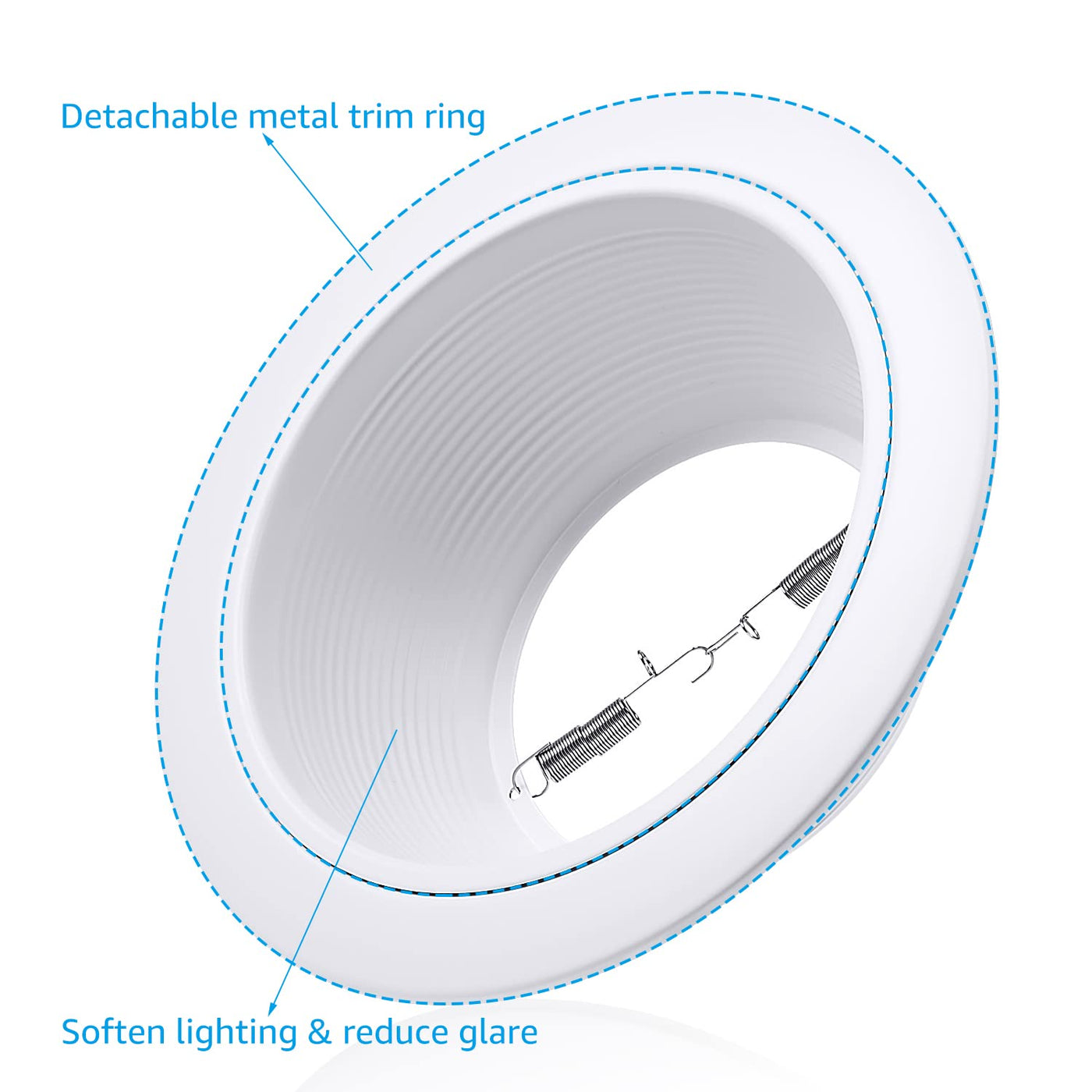 Q: How does the detachable ring benefit my installation?A: The detachable ring allows for a seamless cover of gaps between the housing can and ceiling holes, providing a more decorative appearance while also helping to soften lighting and reduce glare.