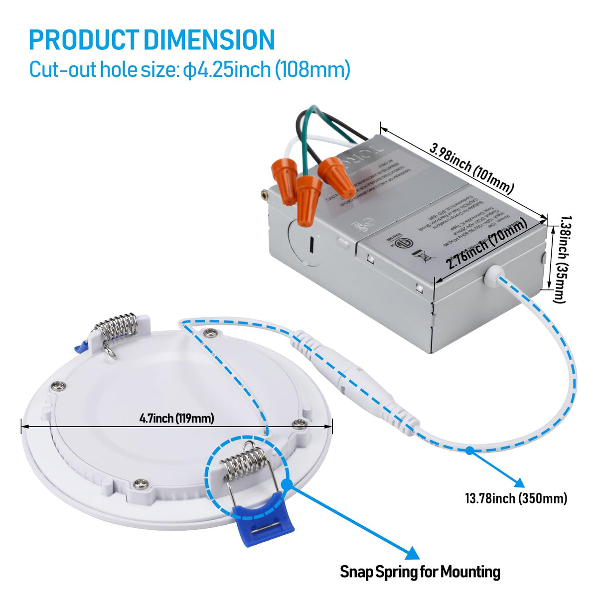 Q: What is the required ceiling clearance for installation?A: This ultra-thin LED recessed light only requires 2 inches of clearance, making it ideal for small spaces where standard fixtures may not fit.