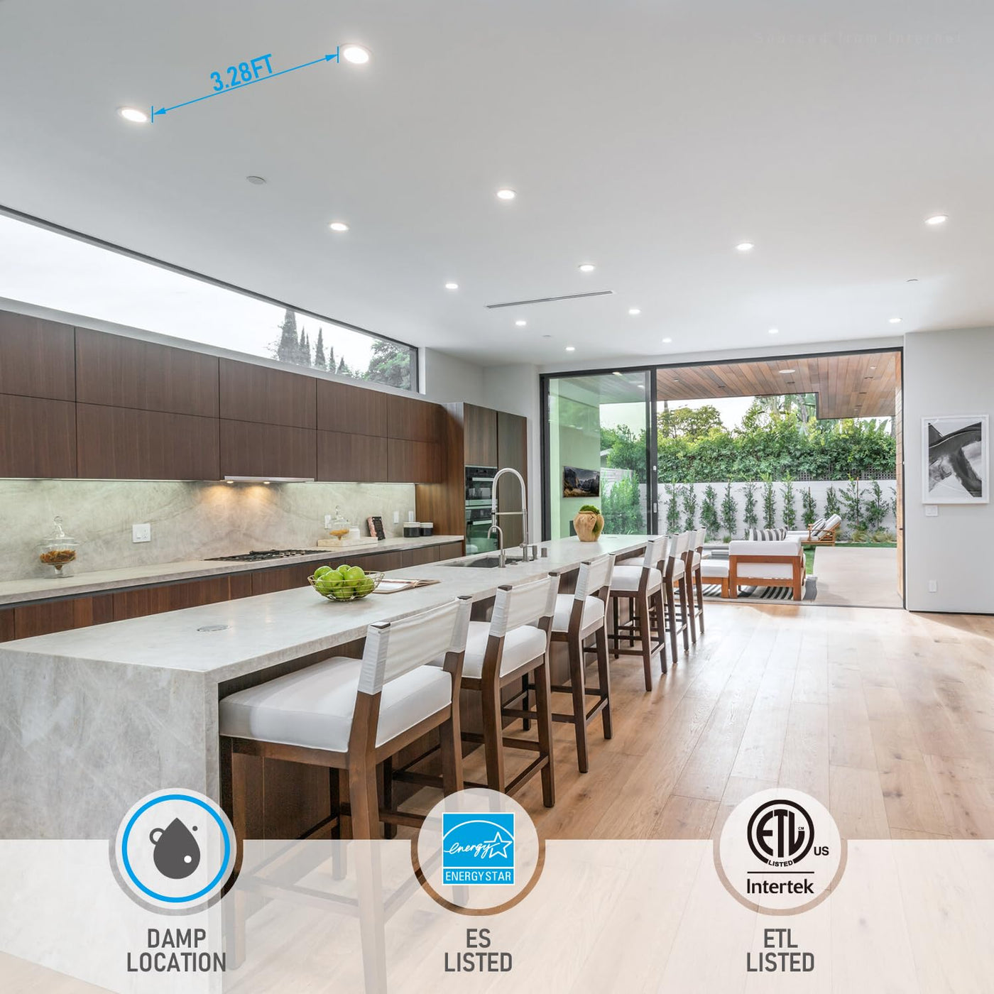 Q: Is this product energy efficient and safe to use?A: Yes, the TORCHSTAR 4 Inch Ultra-Thin LED Recessed Lighting is Energy Star listed and ETL certified, ensuring it meets high energy efficiency and safety standards.