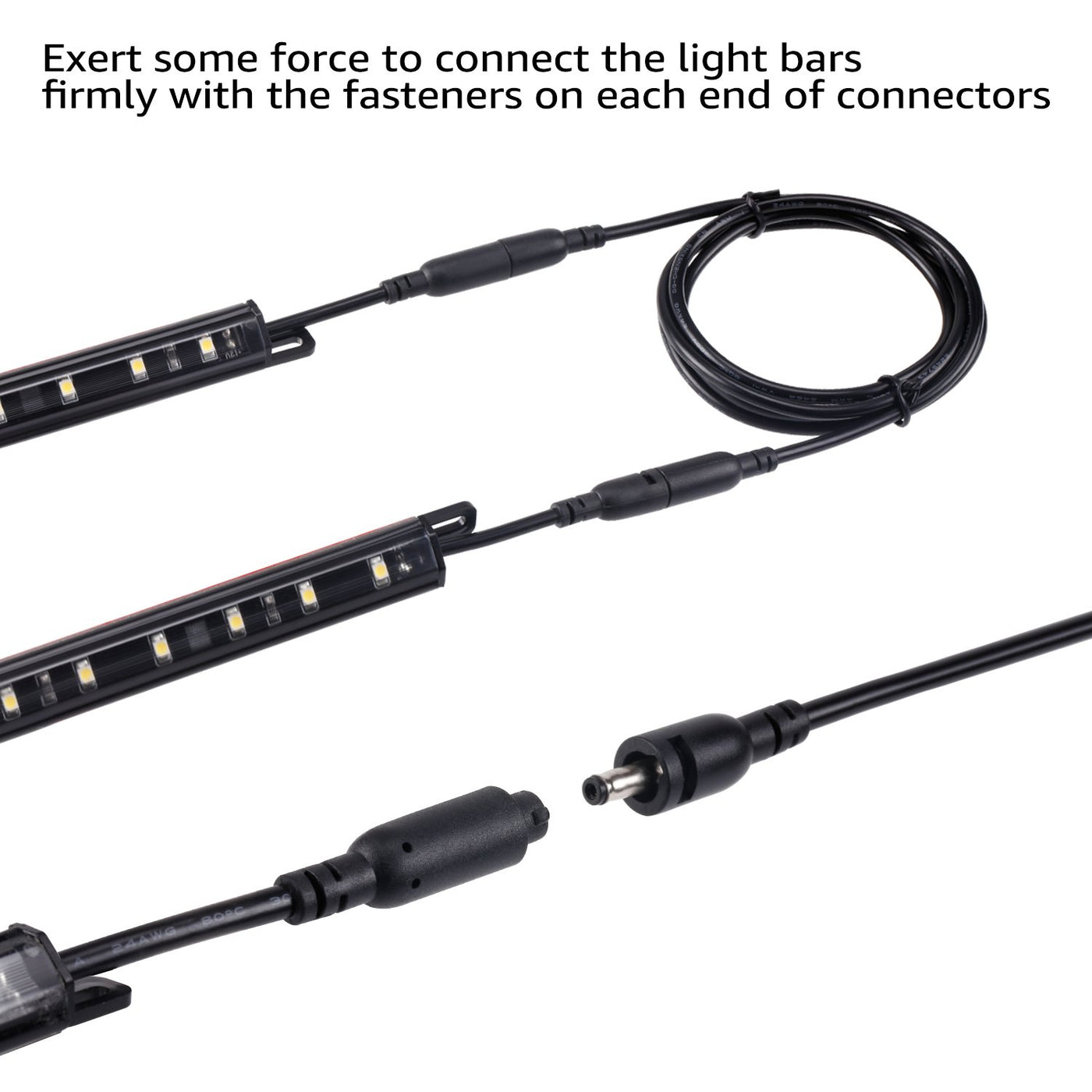 39 inches long wires, together with male-to-female connectors, makes it easy to connect numbers of light bars up together to fit big size gun safe or long cabinet or counters.