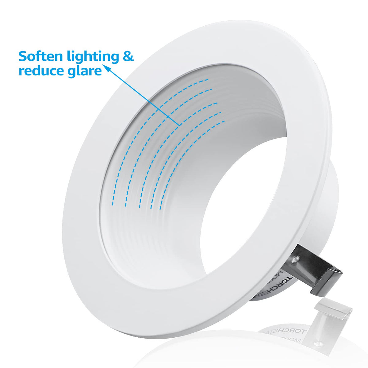 Torchstar 4 Inch Classic White Recessed Light Trim, Metal Step Baffle Trim, Fit Halo/Juno Remodel Recessed Housing, 4 Inch Can Light Trim For Par16, Par20, Br20, White, Pack Of 6