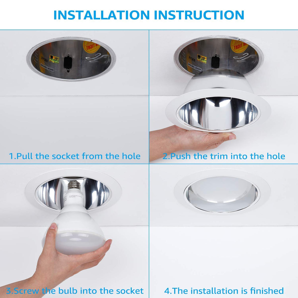 This 6inch aluminum reflector metal trim creates a soft lighting effect. the durable metal construction can last for years, much longer than other plastic trims, and won't yellow with age. The included mounting springs make installing it quick and easy.