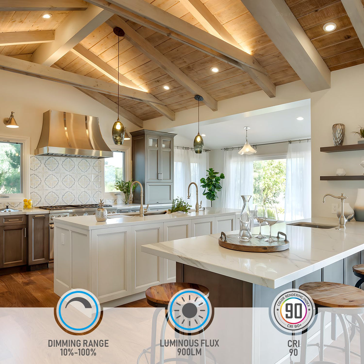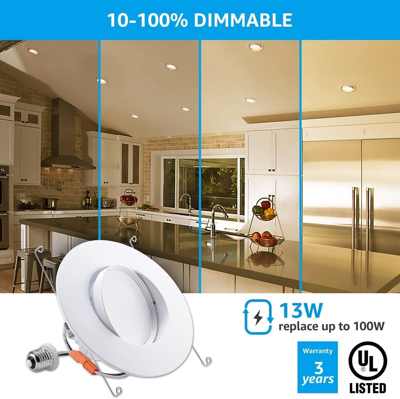 Less Energy Usage This Recessed Downlight Will Significantly Reduce Your Energy Usage And Save Up To 87% On Your Electricity Bill In Daily Use. Featuring Better And More Efficient Lighting Effect And Lower Energy Consumption, This Product Will Never Disappoint You! Adjustable Illumination The Rotatable Light Head Allows You To Adjust The Lighting Direction According To Your Needs, Achieving A Flexible Area Lighting, Perfect For Sloped Ceiling Or Picture Lighting. This Product Can Be 100%-10% Smoothly Dimmed To Meet Your Demands For Brightness, So You Can Set The Light To Any Mood You Like. Better Light For Brighter Home Cri90+ High Color Rendering Combined With 2700K Soft White Will Give Your Interior Living Space An Inviting And Relaxing Atmosphere, Lighting Up Every Corner Of Your Home. This Ul-Listed Lamp Meets All Regulatory Requirements And Ensures Top Quality And Safe Operation, Damp Locations Applicable. Compatible With Ge: Ge 18024 Almond: Luxdm600-12 Ctl: Dm600-12-3 Ah: Sdm/600/Whtte Warranty Comes With 3 Years Product Warranty For Customers Rights And Benefits, Satisfaction Guarantee. Specifications Wattage: 13W Input Voltage: 120V 60Hz Cri: 90+ Base Type: E26 Luminous Flux: 900Lm Cct: 2700K Soft White Dimmable: 10%-100% Working Temperature: -40?-104? Lifespan: 35,000 Hours Ip Rating: Damp Locations