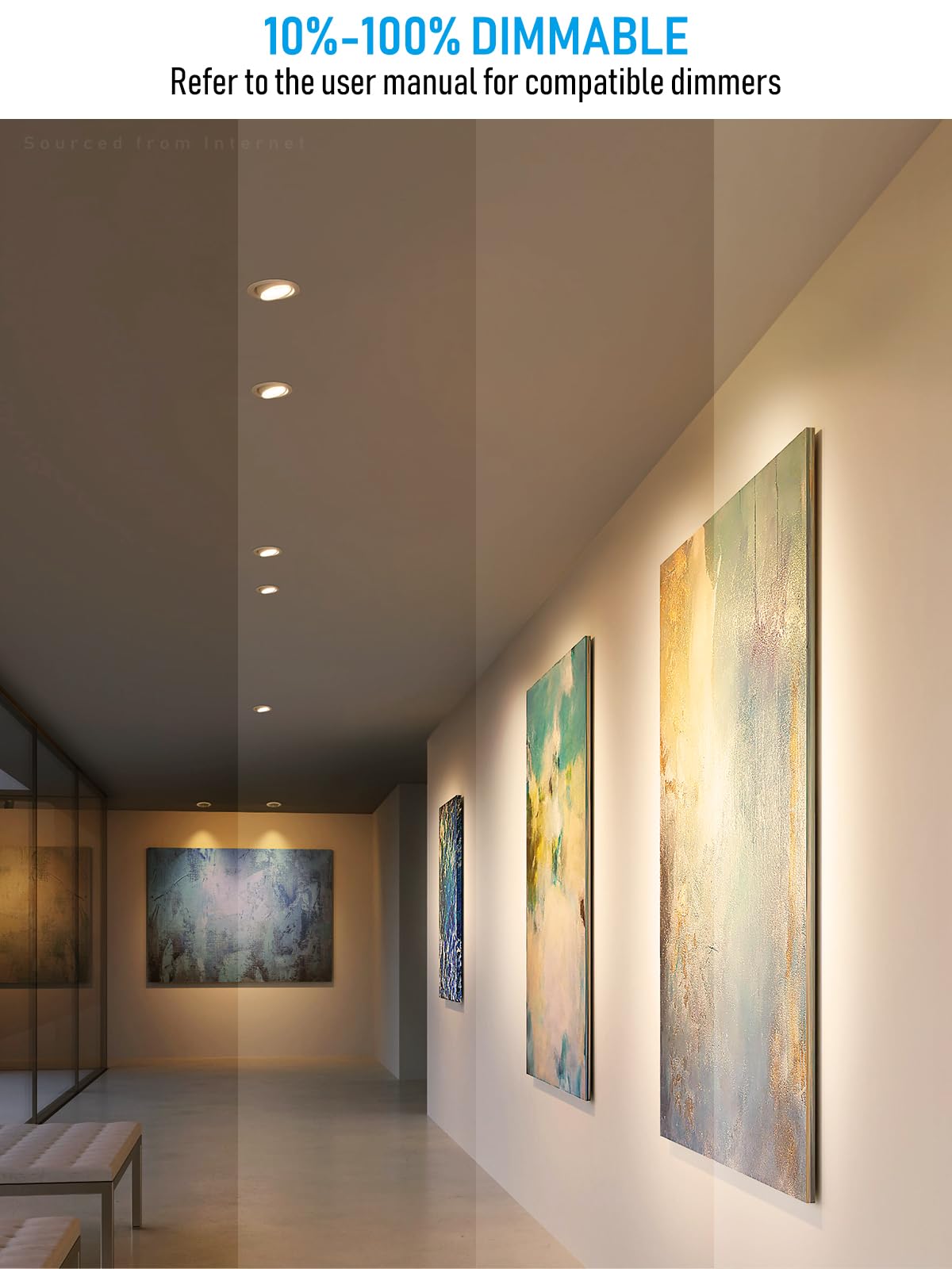 Q: Can I adjust the lighting direction of this recessed light?A: Yes, this recessed light features a 350° horizontal rotation and a 36° beam angle, allowing you to easily customize the lighting direction to highlight artwork or create focused illumination in different areas.