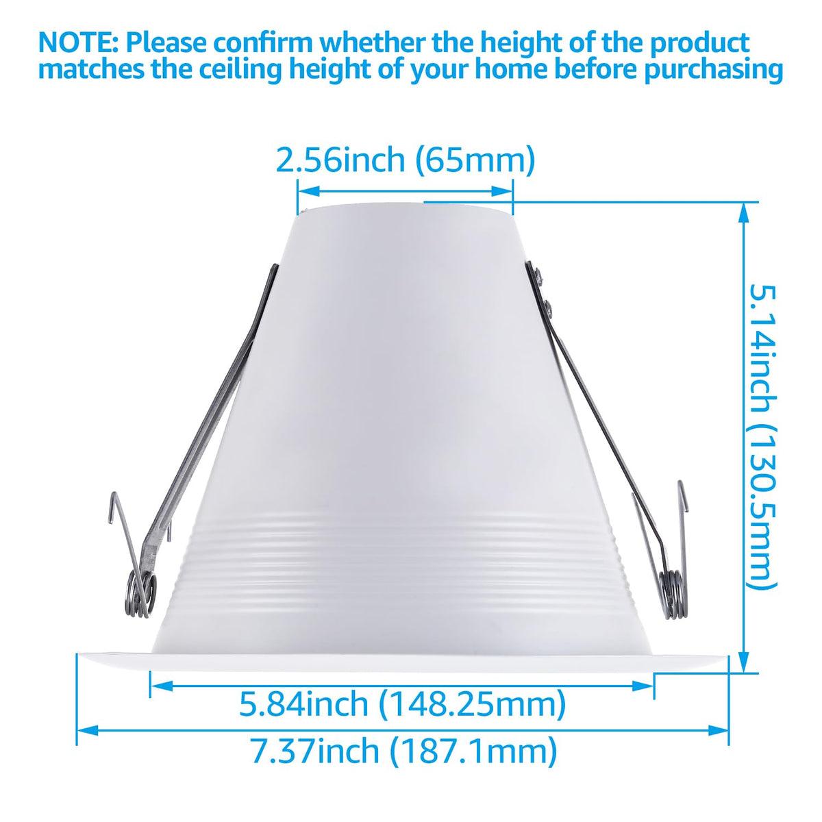 The 6 inches light trim has white metal step baffle to create the soft light effect. It is made by durable metal, which is more long lasting than other plastic trims, without aging or yellowing. Its excellent performance makes it last longer, reducing the costs of maintenance or replacing light fixtures.
