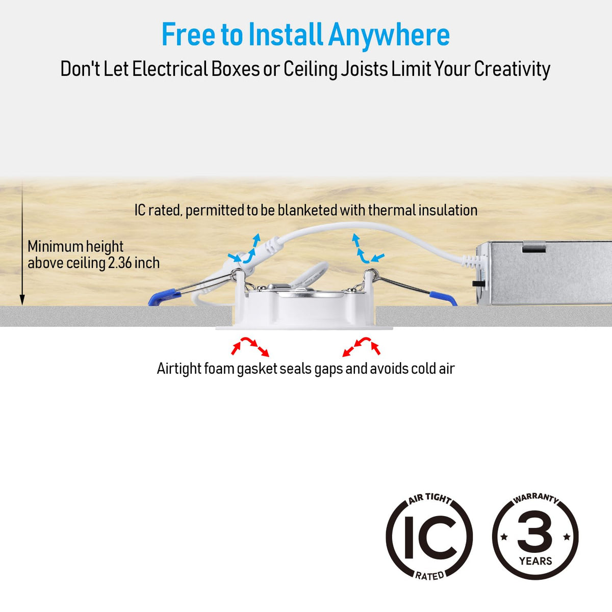 Q: Is this recessed lighting safe for use in insulated ceilings?A: Absolutely! The TORCHSTAR recessed lighting is IC rated, meaning it is safe for use in insulated ceilings and designed to prevent potential fire hazards, ensuring safe and energy-efficient installation.