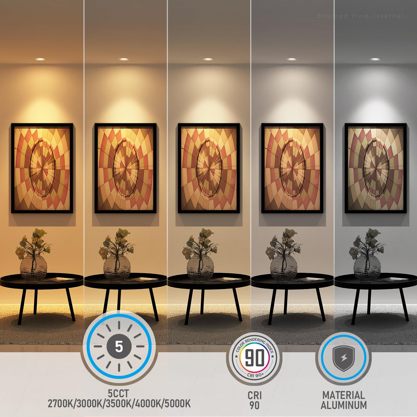 Q: Can I adjust the color temperature of this recessed light?A: Yes, this LED recessed light features a 5CCT option, allowing you to select from five different color temperatures ranging from 2700K to 5000K for versatile lighting customization.