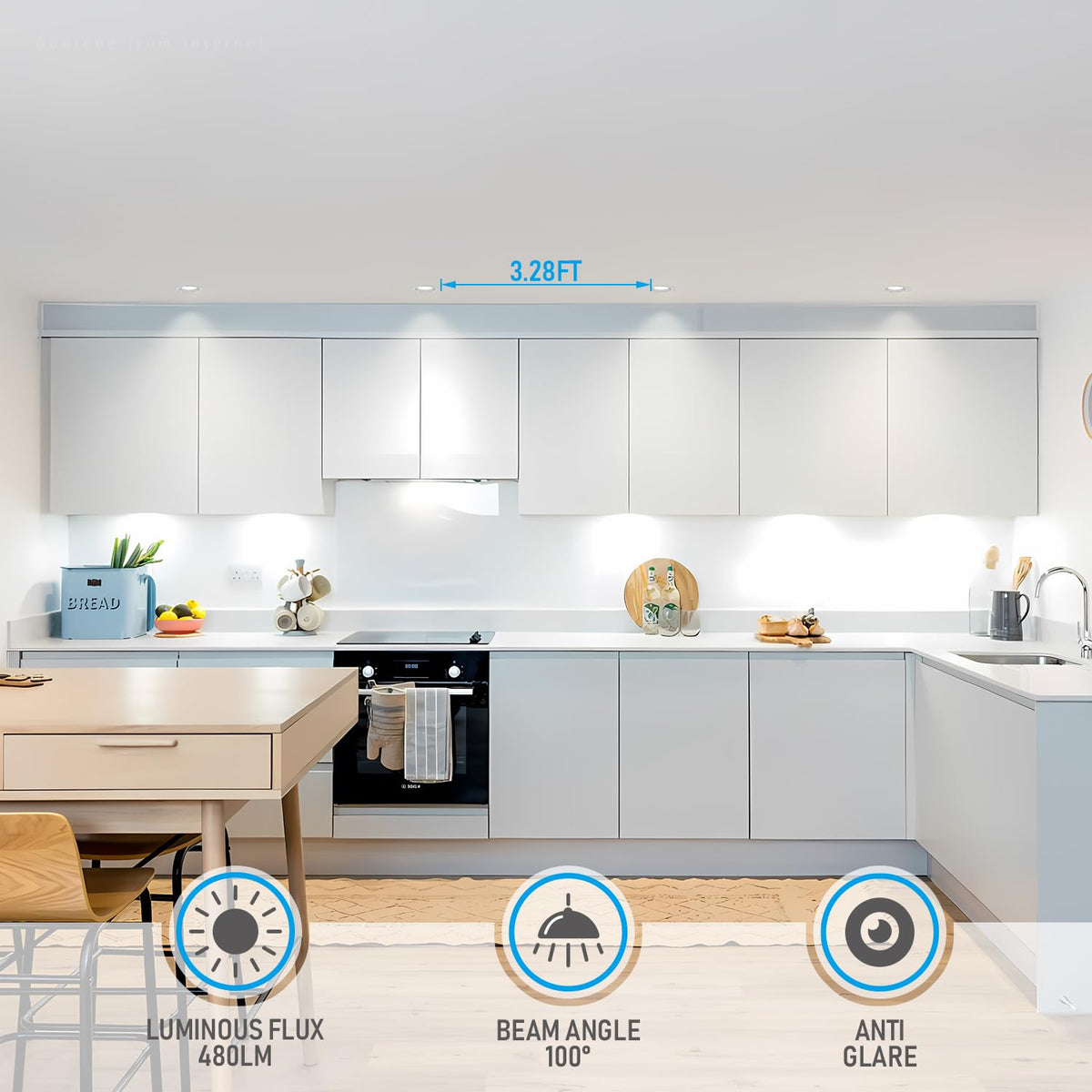 Q: What is the brightness level of the TORCHSTAR 3 Inch Slim LED Recessed Lighting?A: The TORCHSTAR 3 Inch Slim LED Recessed Lighting offers a brightness level of 480 lumens, making it suitable for various applications such as accent lighting, task lighting, and general illumination.