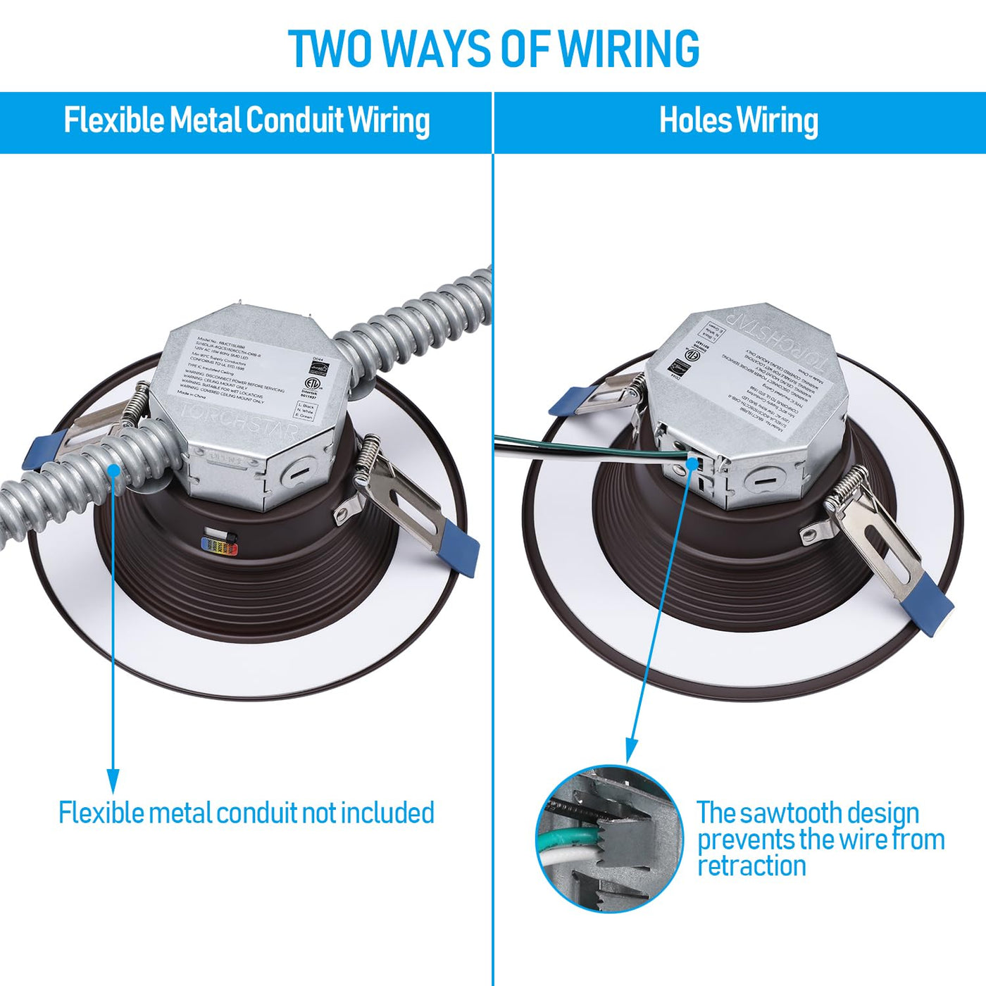 Q: How do I install the TORCHSTAR canless recessed lighting?A: Installation is simple and can be done without any tools (aside from cutting a hole in the ceiling). The included mounting hardware and integrated j-box make the process quick and hassle-free.