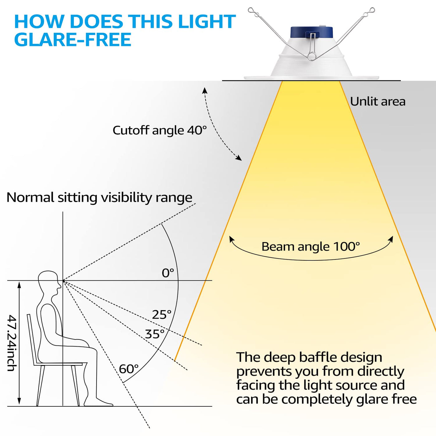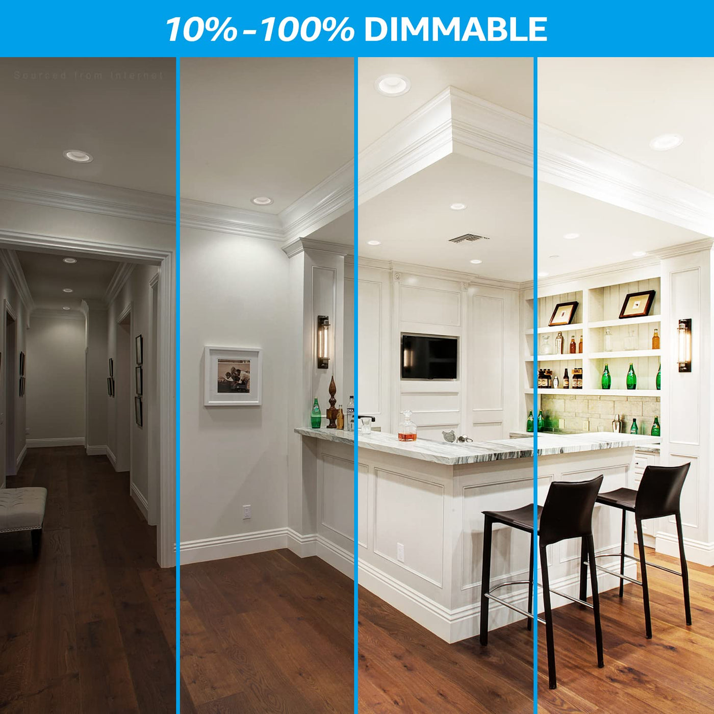 Q: Are these LED recessed lights compatible with standard dimmer switches?A: Yes, the TORCHSTAR LED recessed lights are 10%-100% dimmable, making them compatible with most standard dimmer switches. This feature allows you to adjust the brightness to suit your mood or activity, enhancing your lighting experience.