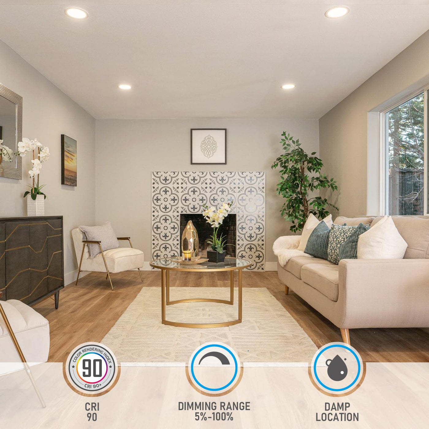 Q: How energy-efficient are these LED recessed lights?A: These LED recessed lights consume 88% less energy compared to traditional incandescent and halogen bulbs. Over their lifespan of 54,000 hours, they can save you up to $6,273 in energy costs, making them a cost-effective lighting solution.